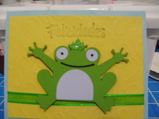 Hello!!! This is a simple card I made for the first challege, that momo has on her blog (madebymomo.blogspot.com). We have to use an animal and I thought this is a beatiful frog. I have to work a little more on my stamping but it`s a cute frog. Thanks,