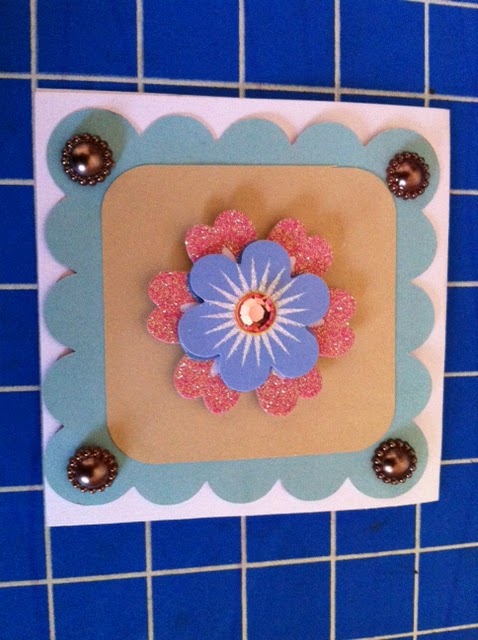 The second chanllenge for today is to make a card or scrapbook page using kraft cardstock. My card for this entry is 4.25 x 4.25. I cut my scallop square using the Celebration cartridge and the square inside too. I put some pearl on the four conner and put a flower on the center. I`ll use this card for mother`s Day on my country, that`s the last sunday of may.